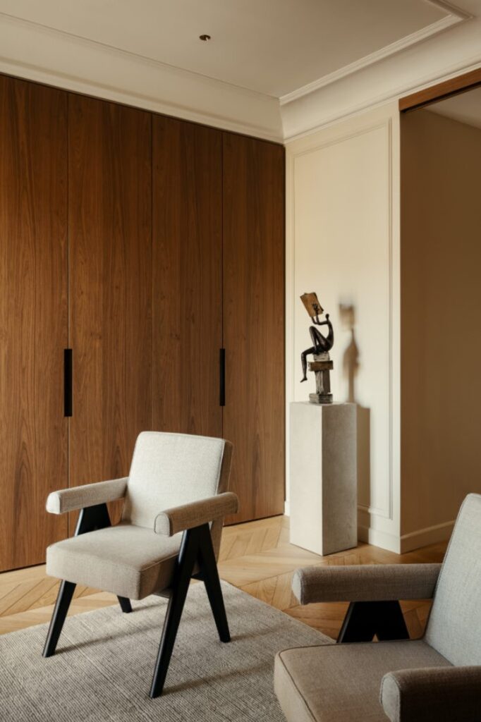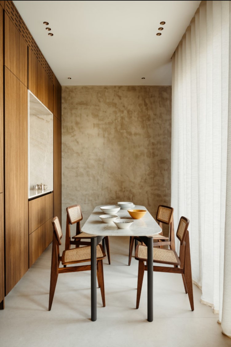 Kelly Boukobzas Ansatz betont stille Eleganz und emotionale Tiefe. Wie sie bemerkt: „Holz zu begegnen bedeutet, der Zeit zu begegnen“ – ein Ausspruch, der die Sensibilität des Projekts für die Alterung von Materialien, Textur und die Schönheit natürlicher Unvollkommenheiten widerspiegelt.