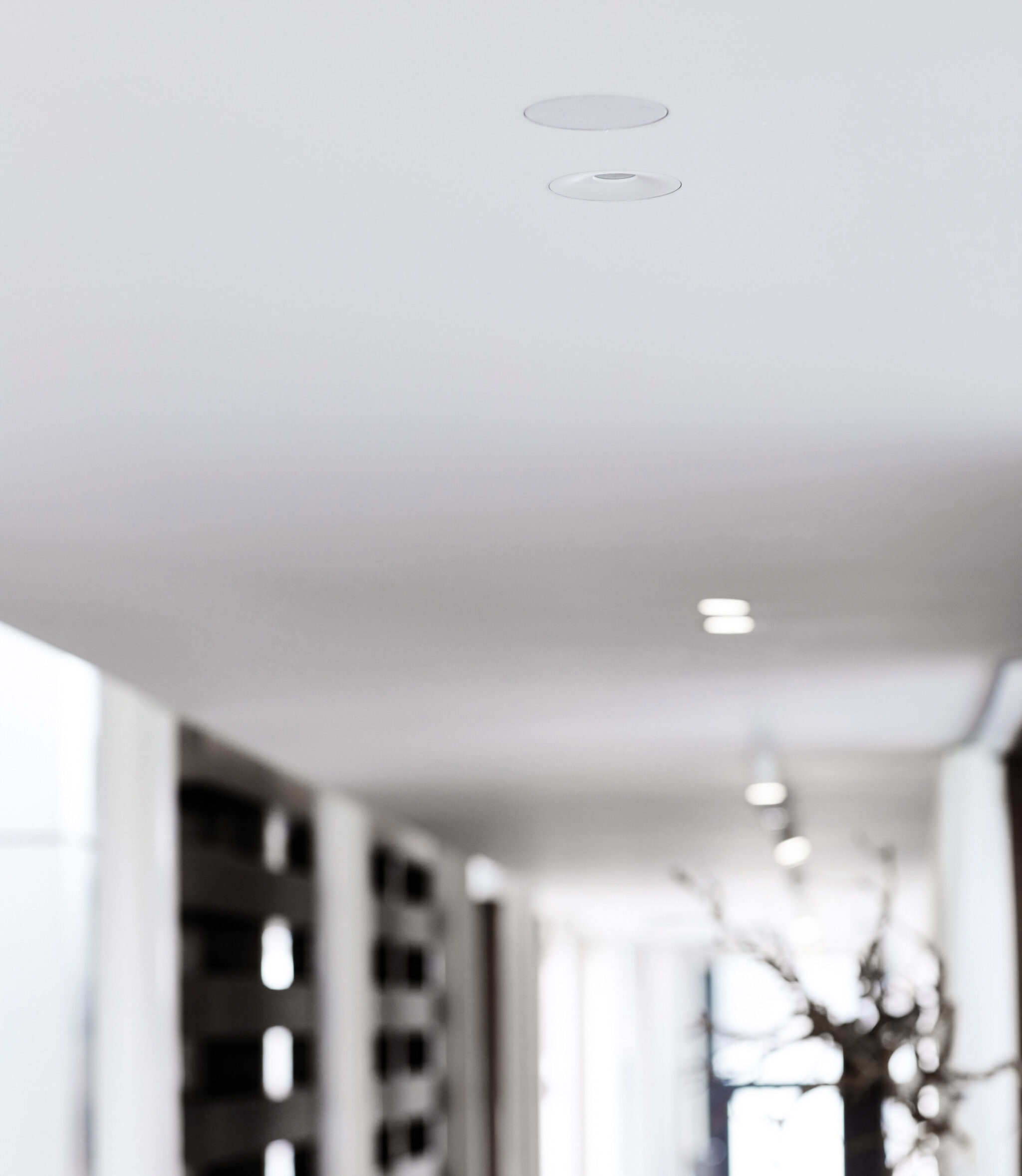 Storm Medium Sound ist ein vollständig integrierter Lautsprecher, der bündig in der Decke montiert wird. Um einen Stereoklang zu erzielen, empfiehlt es sich, die Lautsprecher stets paarweise zu installieren. In größeren Räumen sollte die Anzahl der Paare erhöht werden, um die Stereoqualität zu bewahren.