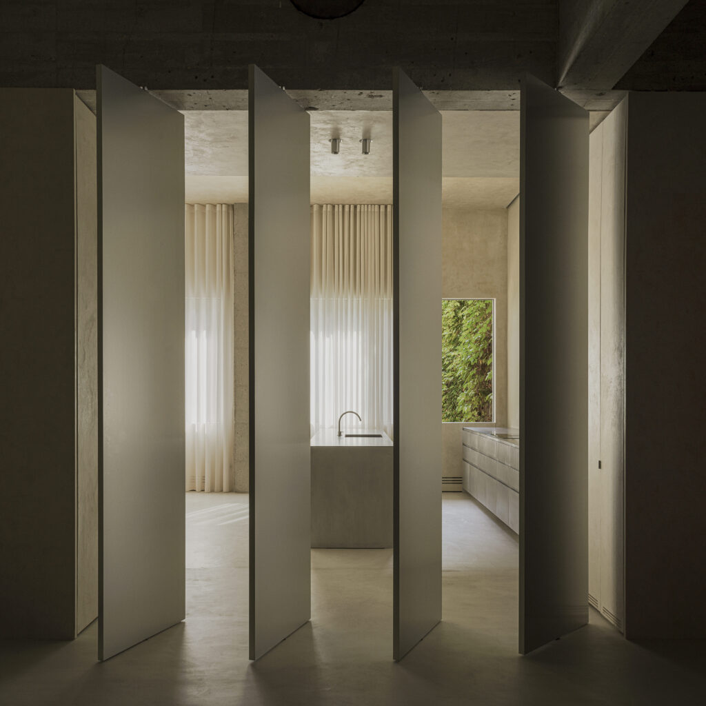 Jedes Detail – von den offenliegenden Holzbalken bis hin zu den handgefertigten Möbelstücken – zelebriert Schlichtheit, Handwerk und Proportion. Der Raum ist zugleich minimalistisch und warm, funktional und poetisch. Er ist nicht nur ein Zuhause, sondern spiegelt die Vision von AC Ramboux wider: Architektur sollte als ein Erlebnis von Gelassenheit und zeitloser Schönheit erfahren werden.