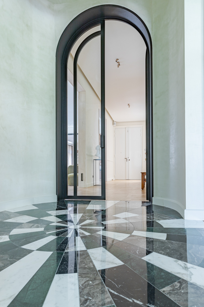 In der historischen Avenue Rapp in Paris haben Kelly Boukobza und LUNE Eclairage dieses beeindruckende Projekt verwirklicht. Die von Haussmann inspirierte Architektur umgibt dieses prächtige Wohnhaus.