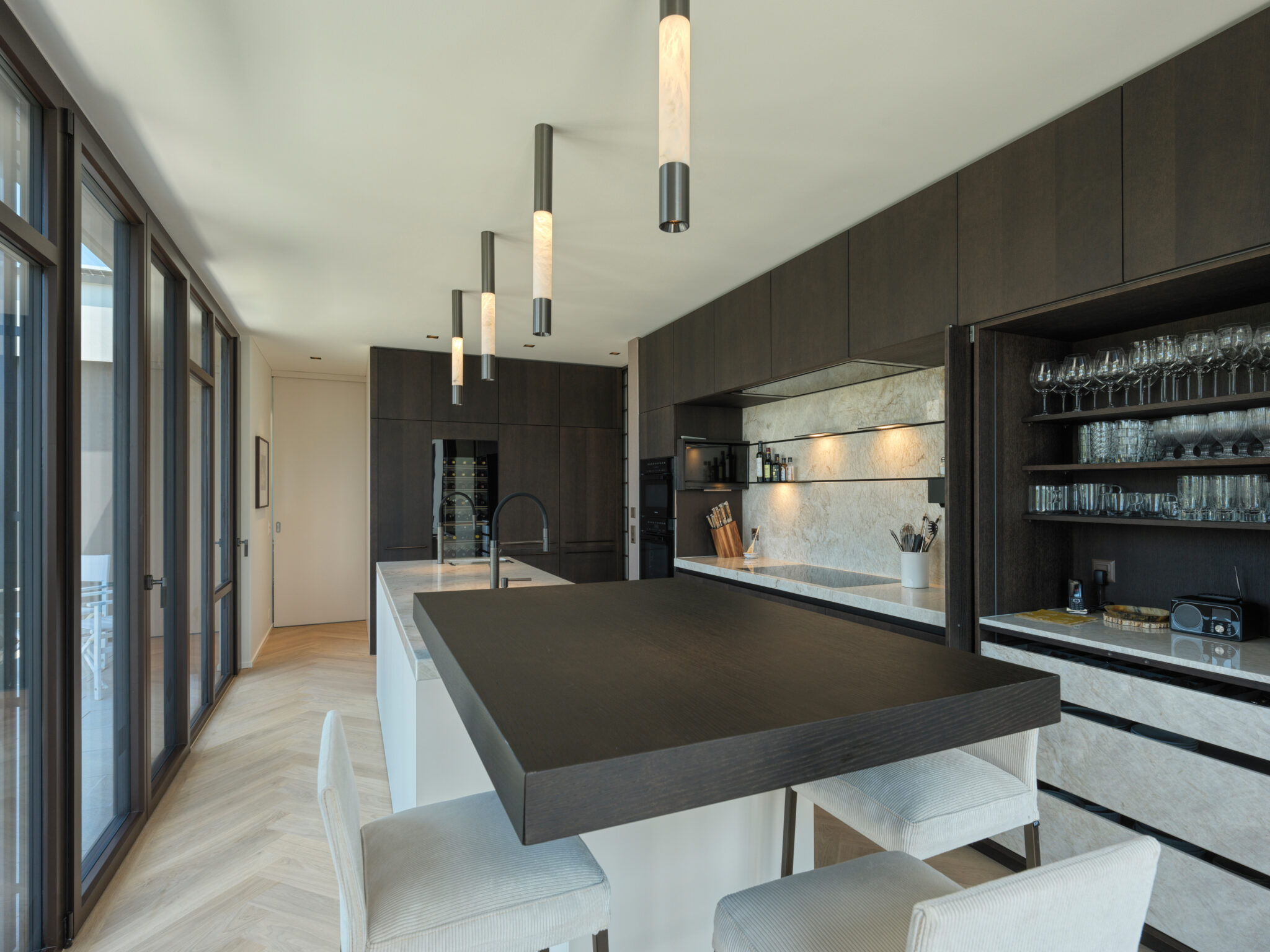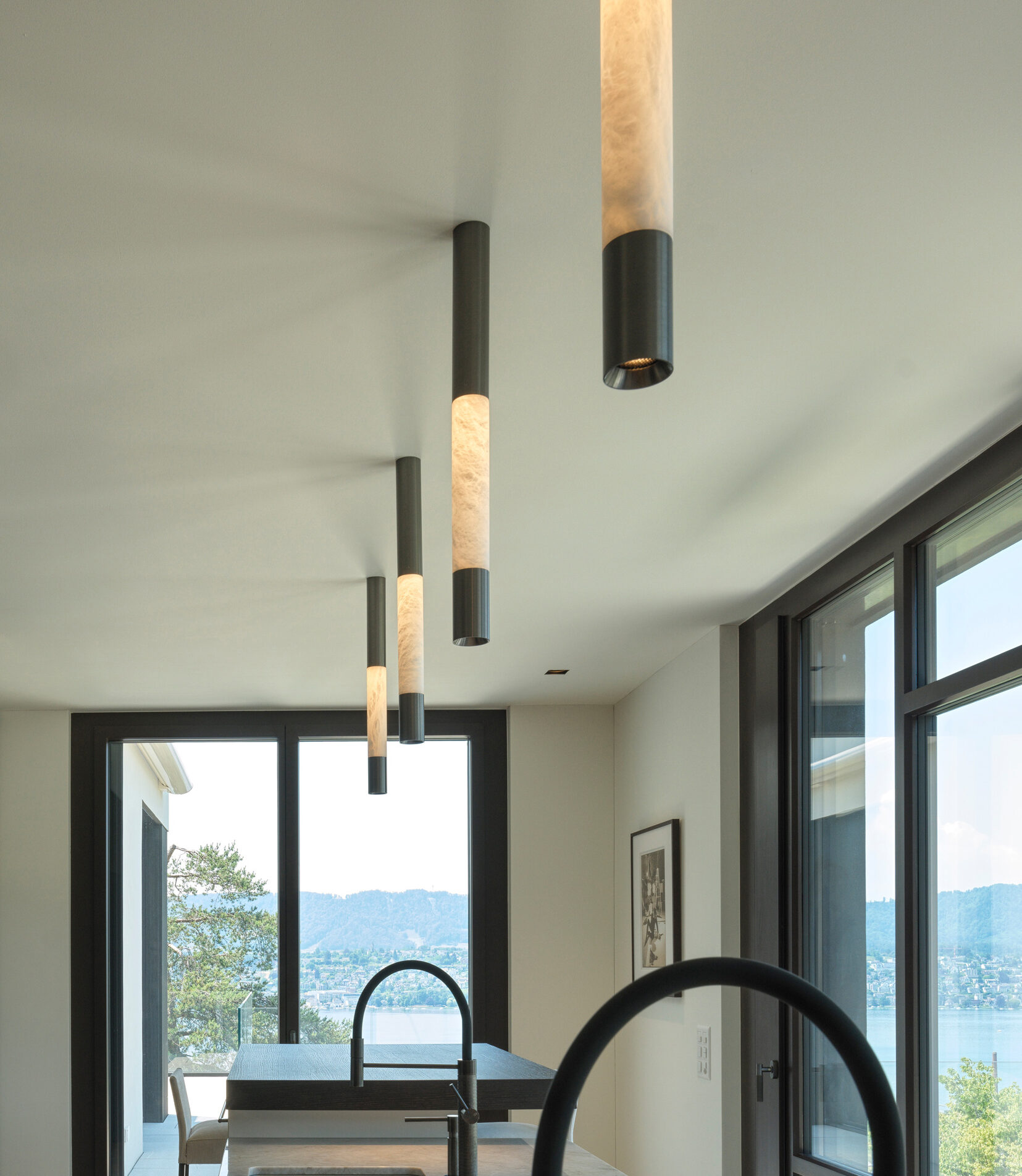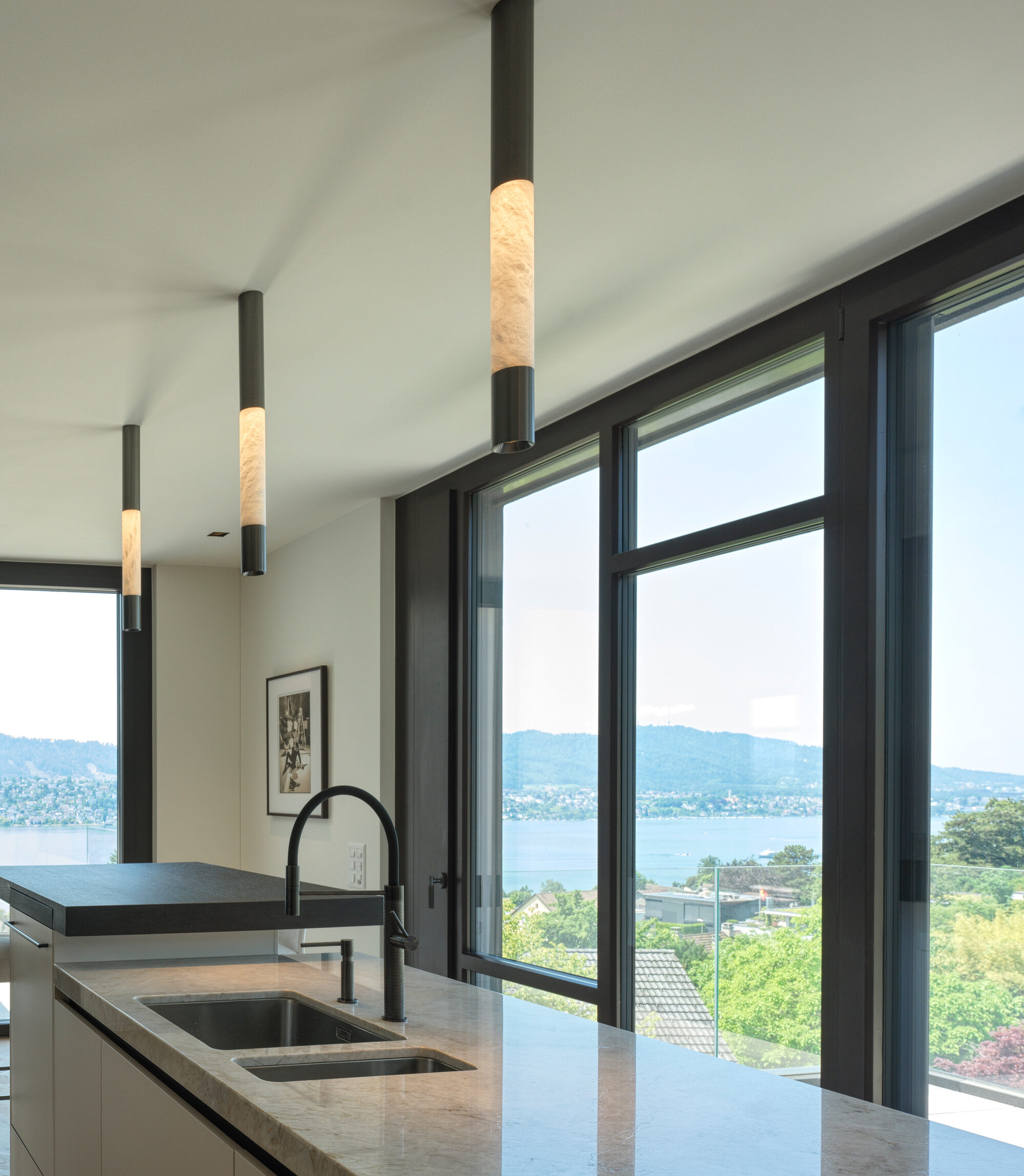Als zentrales Element des Küchendesigns hat Orea die oberflächenmontierte Leuchte Alubaster Direct von ONE A integriert. Diese Lampe strahlt nicht nur durch ihr Alabastermaterial ein warmes und einladendes Licht aus, sondern bietet durch ihr unteres Element auch gezielte Arbeitsbeleuchtung. Die Alubaster Direct vereint ästhetische Schönheit und praktische Funktionalität und erhöht so das Ambiente des Küchenraums.