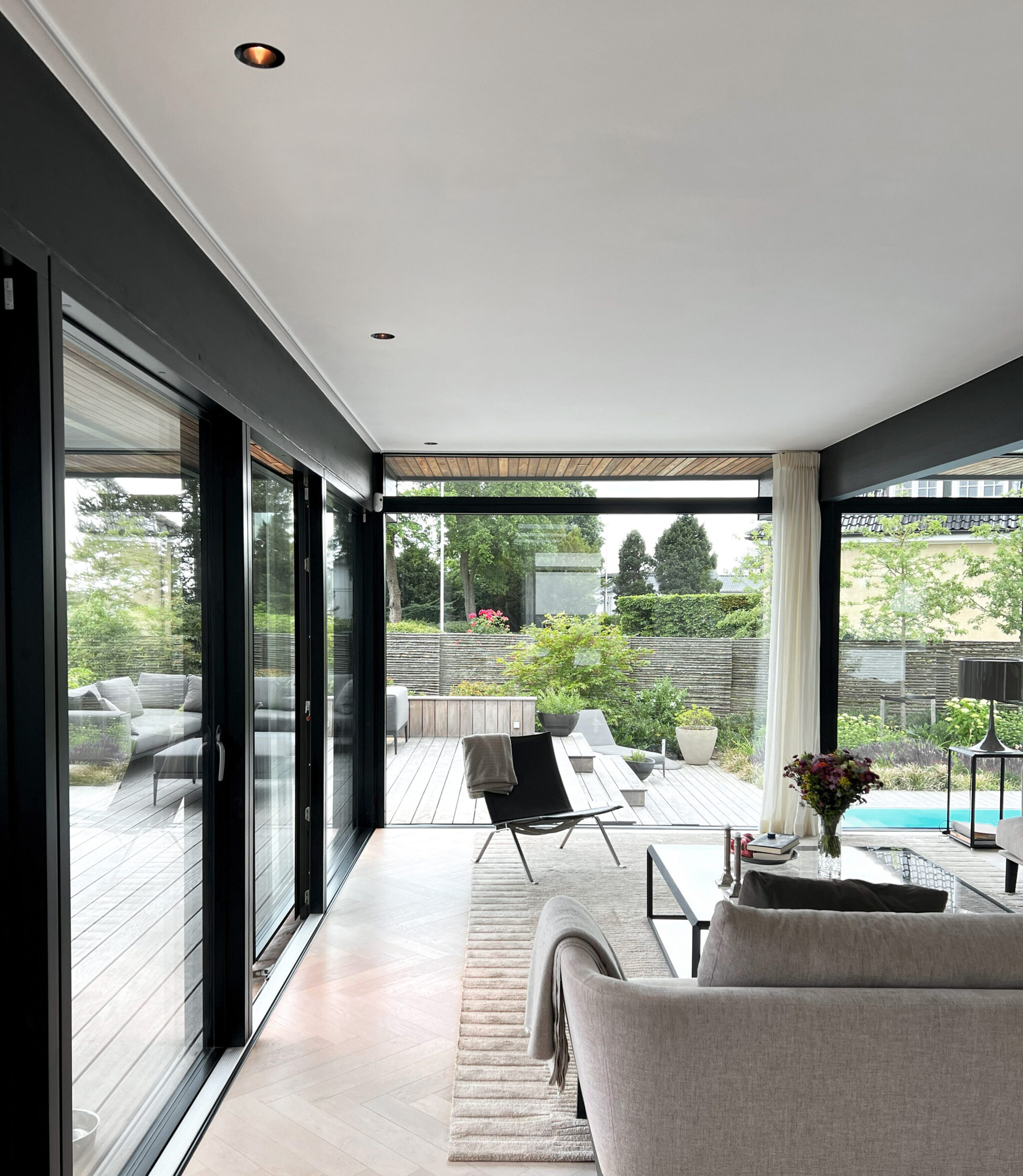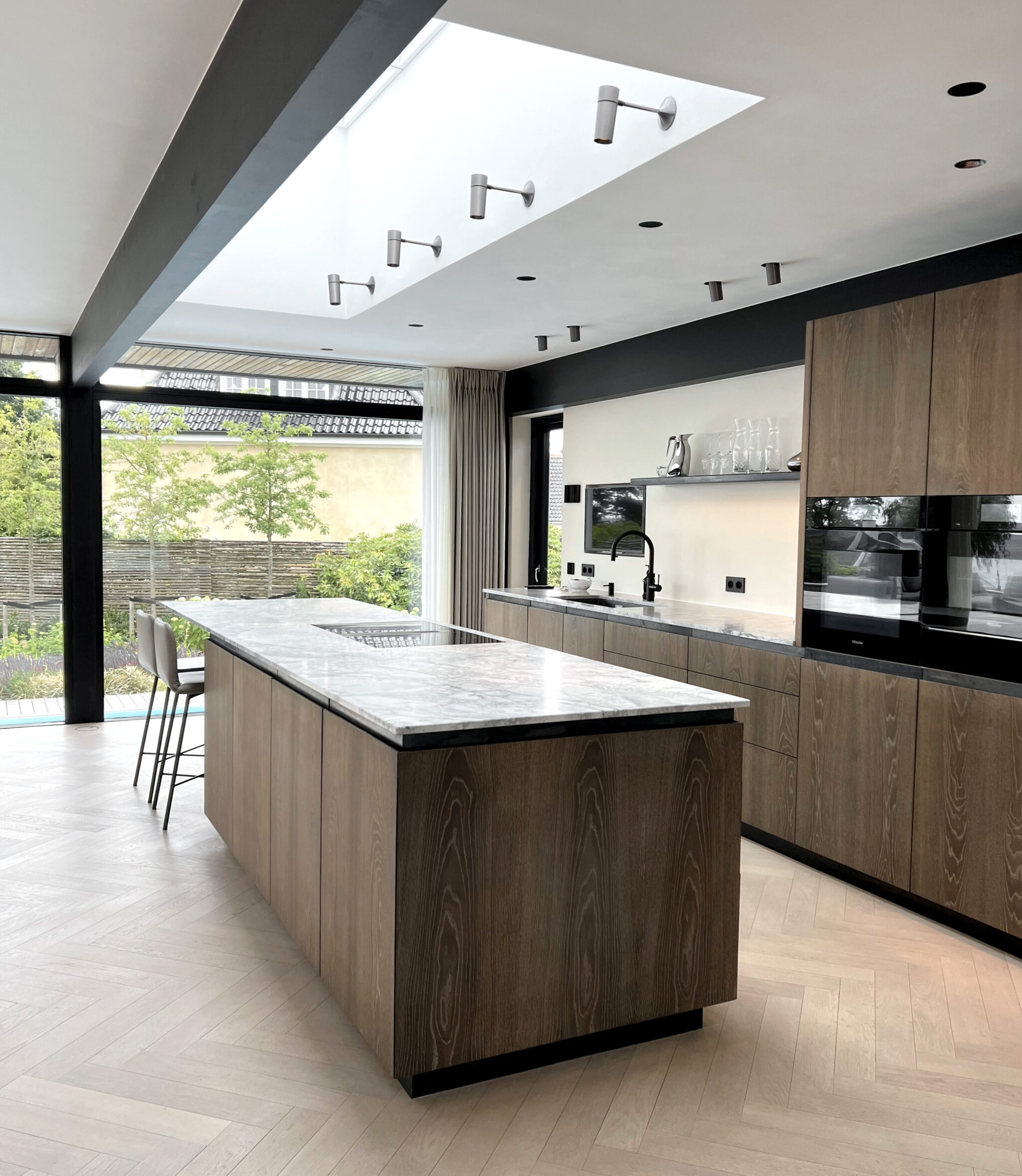STORM SYSTEM® bietet nicht nur einen bündigen Deckenabschluss, sondern ermöglicht auch die Integration von Deckenbeleuchtung, Lautsprechern, Rauchmeldern, Belüftung und verschiedenen weiteren Einbauten in ein einheitliches System – eindrucksvoll veranschaulicht durch Møller & Rothe.