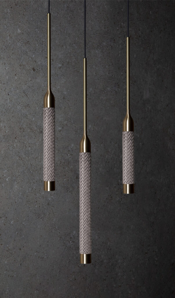 | Carefully integrated into the vertical stem of selected luminaires, braided leather invites a tactile experience that feels as intentional as it looks – adding warmth, contrast, and artisanal refinement to sculptural forms. |
